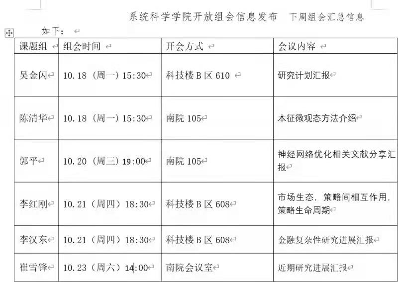 太阳成集团tyc151cc开放组会信息发布(10.18-10.23)