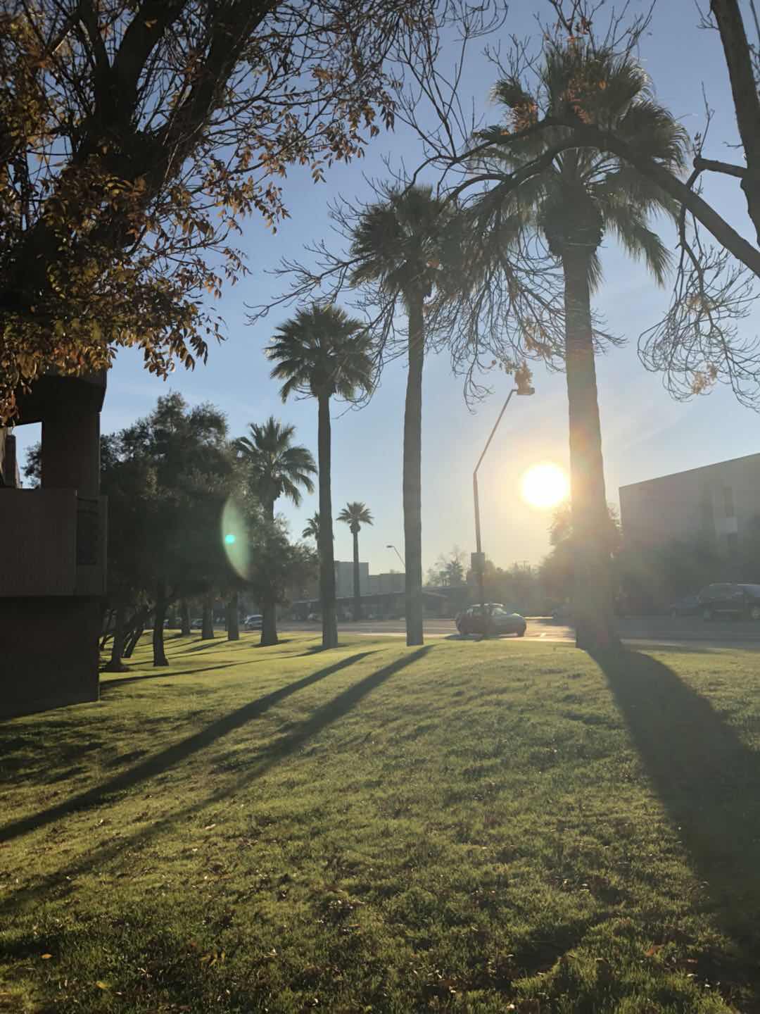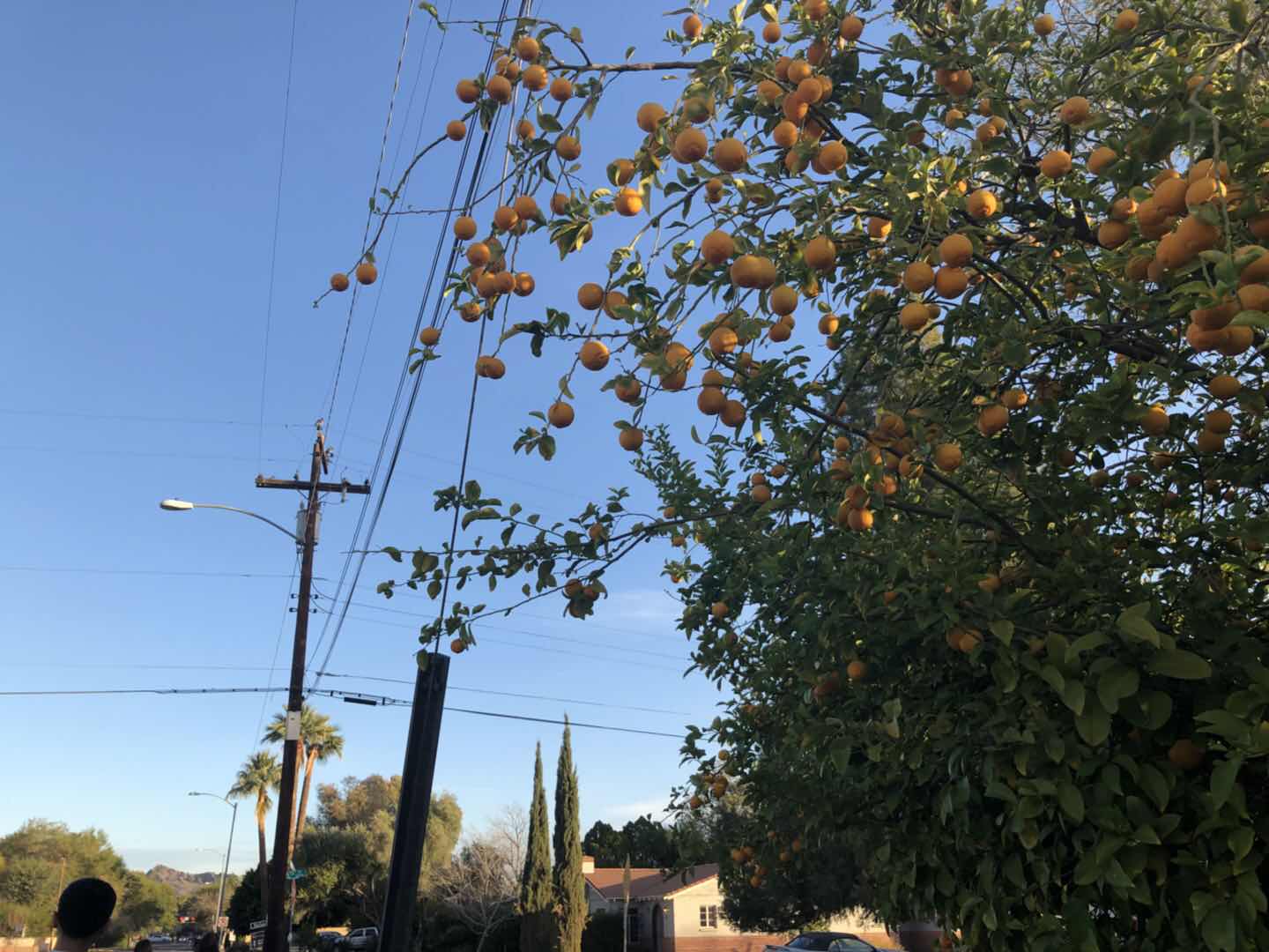 亚利桑那州地处美国的西南方,属热带气候,一月份温度也在10摄氏度到20摄氏度之间,气候十分怡人。巨大的仙人掌和椰子树随处可见,橘子树也作为景观树或是种在人家的院子里,或是作为行道数栽在道路两旁。