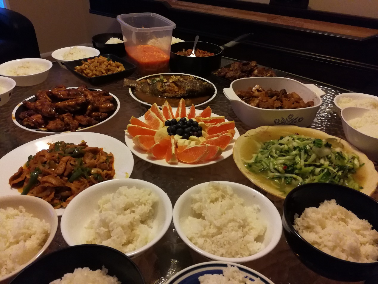做饭,对于要在美国生活的同学们来说,是一个巨大的挑战。好在同学们这一行中不乏隐藏于民间的大厨,厨艺之精湛令大家大开眼界。第一周周末,同学们还邀请老师们来家里聚餐,文雷和王文静两位同学大展厨艺。