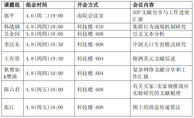 太阳成集团tyc151cc开放组会信息发布(4.5-4.11)