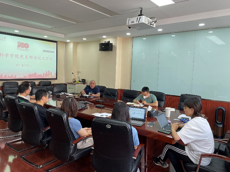 2021年9月2日下午,公司在科技楼B区608召开新学期党支部书记工作会议。会议由周亚老师主持,全体师生党支部书记参会,总支组织委员李小萌老师、秘书王梦琦老师、以及员工党建组织员、宣传员应邀参会。