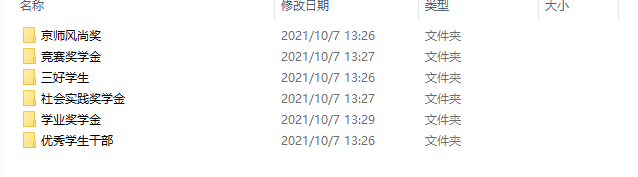 1、请将申请奖项各创建一个文件夹,其中包含申请表(word)、代表作(仅限国家、学业奖学金)及支撑材料(文件夹);并将所有奖项文件夹统一压缩后,用学校邮箱(学号@mail.bnu.edu.cn)发送至xitong@bnu.edu.cn。邮件主题和附件命名格式例如:学号_姓名_奖学金申请材料。